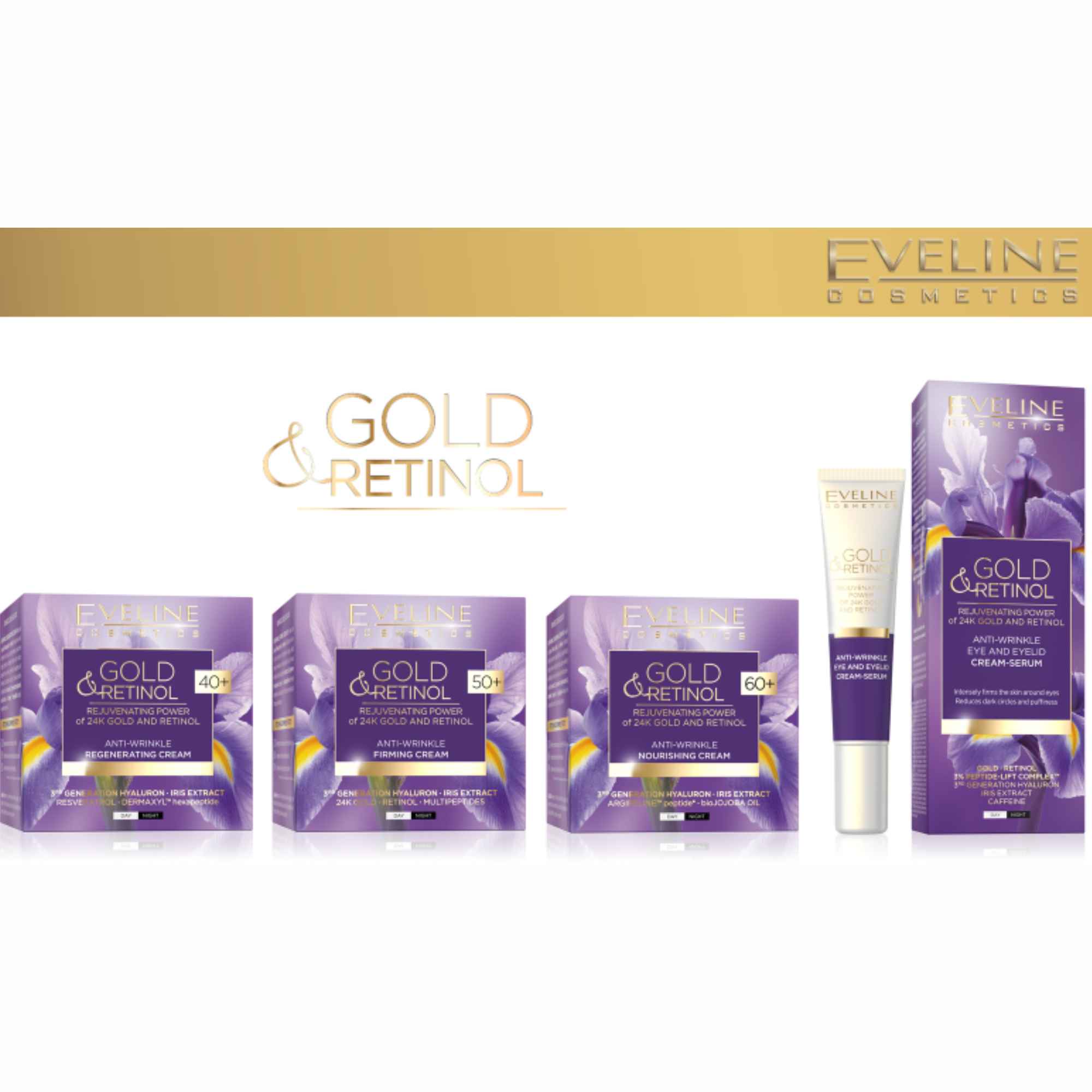 Eveline Gold and Retinol Anti Wrinkle Regenerating Face Cream 60+ Day Night 50ml