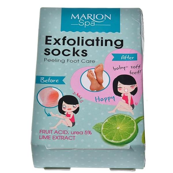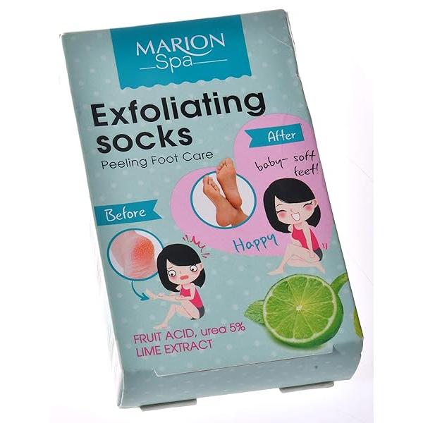 Transform your feet with Marion Spa Exfoliating Socks, the ultimate foot care solution for soft, smooth, and revitalized skin. Watch dry, calloused feet peel away to reveal baby-soft skin underneath. This 1 pair of exfoliating socks is designed to rejuvenate your feet, leaving them feeling refreshed and renewed. Say goodbye to rough and cracked heels with Marion Spa Exfoliating Socks.